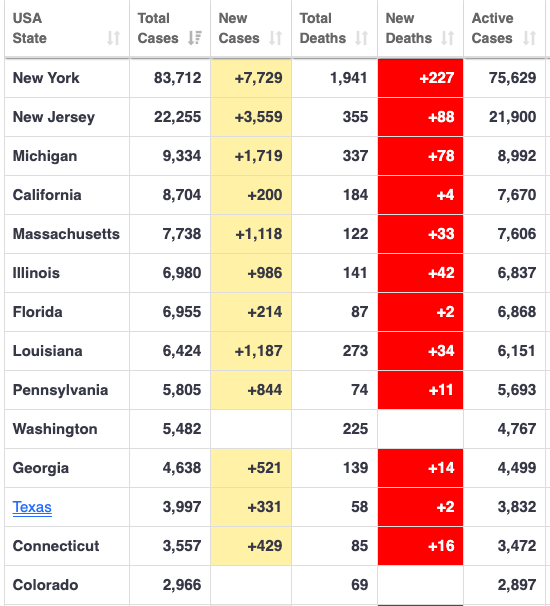 bang với con số tử vong thấp nhất. New York và New Jersey vẫn là