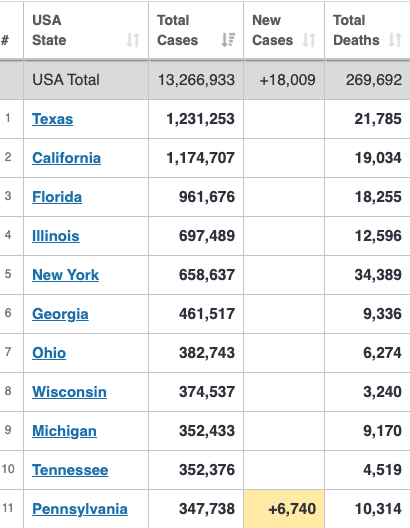 nhiễm trong một ngày. Một kỷ lục khác. Hai tiểu bang bị nạn