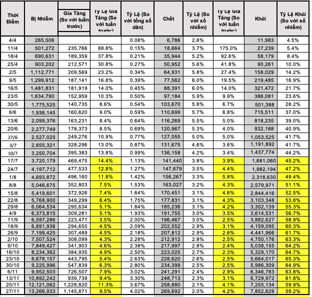 nhiễm). Đó là những thống kê
