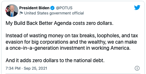 tŕnh Build Back Better không tốn một xu nào hết. https://thefederalist.com/2021/09/29/president-biden-governs-through-obvious-ham-fisted-lies/ Điều