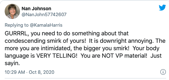 Một mặt, bà Kamala Harris nói năng hùng hổ