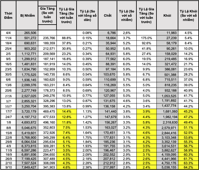 TIN TỨC – 10/10/2020 CẬP NHẤT THỐNG KÊ COVID Ø Số