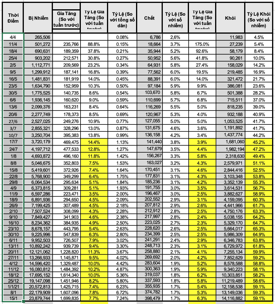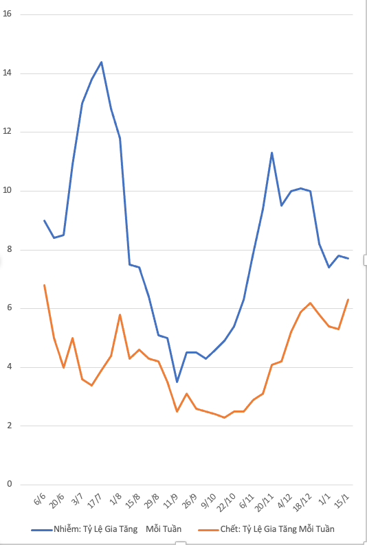 Nh́n chung, tỷ lệ gia tăng mỗi tuần có