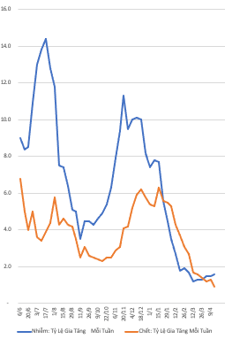 bị nhiễm và chết vẫn tăng, nhưng ở
