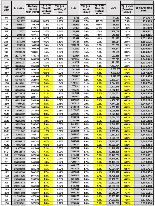 bị nhiễm tăng 1,6%, trong khi số tử vong tăng