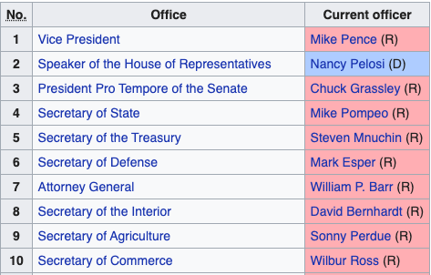 ngoại trưởng Mike Pompeo. Theo Hiến Pháp, tổng