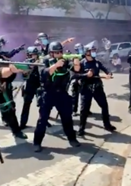 bom cay và gậy gộc tấn công cảnh sát, gây ra …