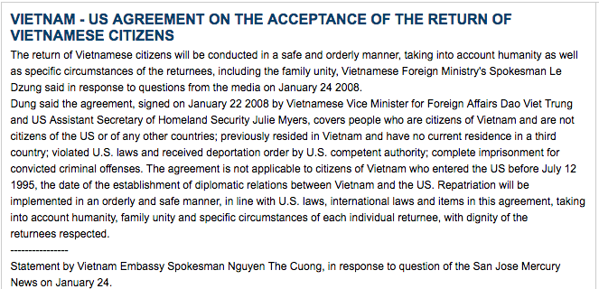 bị trục xuất về VN. Tuy nhiên, v́ quan hệ