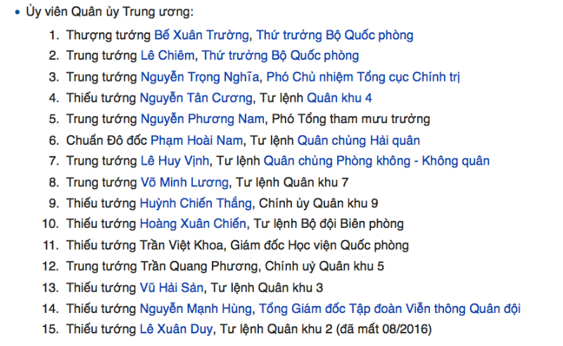 gần hết các tướng quân khu vào danh sách UVQUTƯ