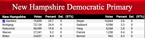 với hơn 24% hay 72.000 phiếu của anh Buttigieg,
