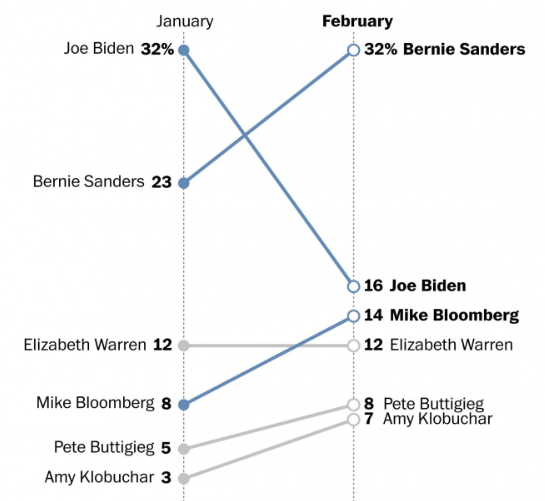 xuống c̣n có 16%, trong khi cụ Sanders vọt lên từ
