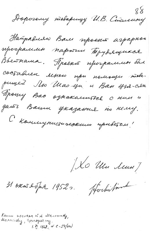 Bức thư Hồ gửi Stalin về cải cách ruộng đất